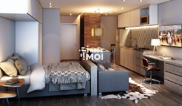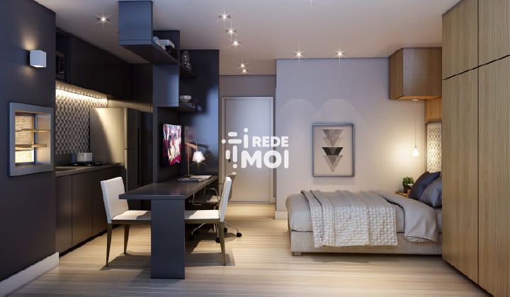Um espaço inteligente, aconchegante e funcional, perfeito para quem quer morar perto de tudo e não perder tempo com decoração ou escolha de móveis.