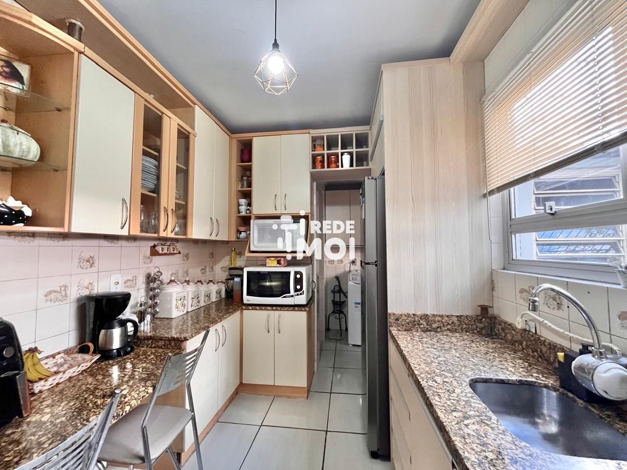 Apartamento térreo, 2 dormitórios, excelente metragem e ótima localização. Possui móveis planejados na cozinha e no banheiro social. Possui 2 áreas externas.