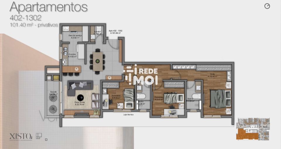 3 dormitórios (1 suíte)