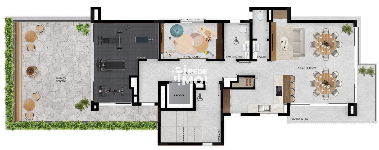 • Rooftop com terraço, espaço fitnes, brinquedoteca e salão de festas