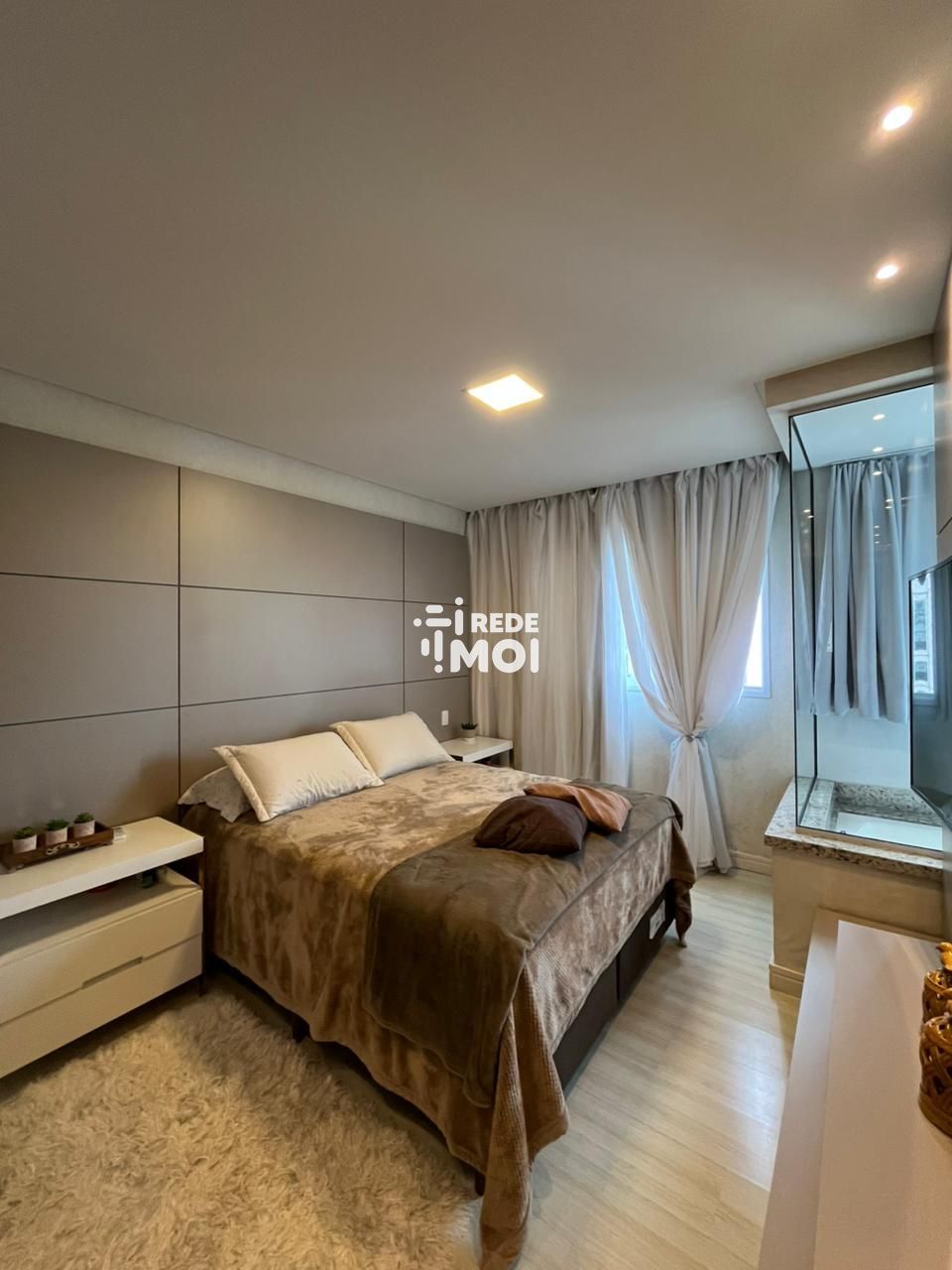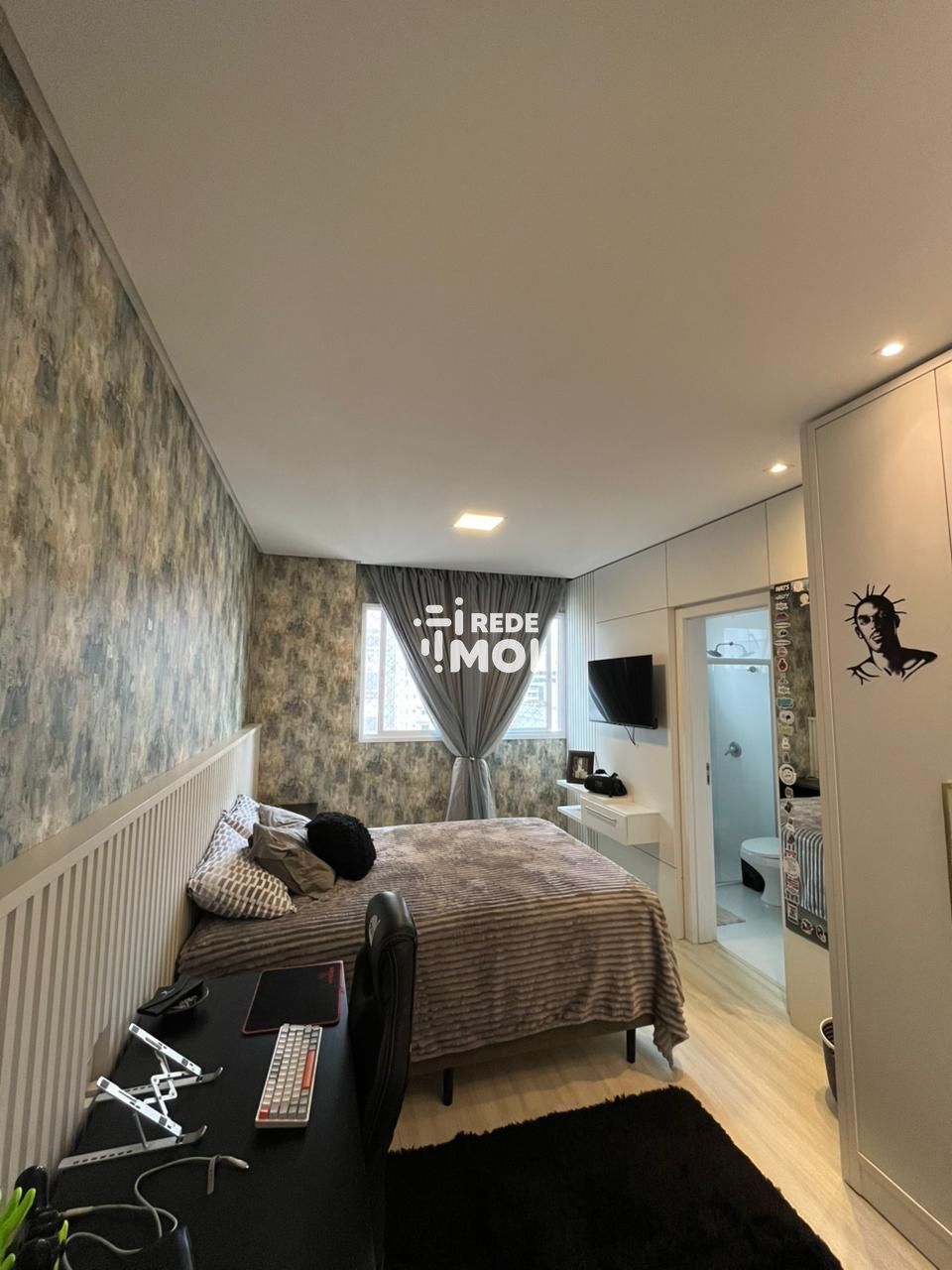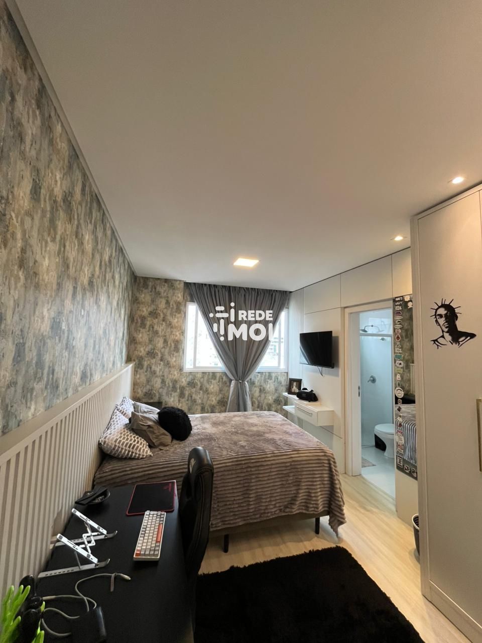 As 3 suítes são verdadeiros refúgios de tranquilidade, cada uma com seu próprio banheiro privativo e armários planejados. A suíte master ainda conta com uma luxuosa banheira de hidromassagem, perfeita para relaxar após um longo dia.