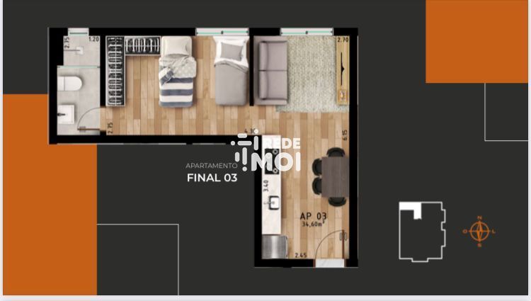 34.61 m² privativa