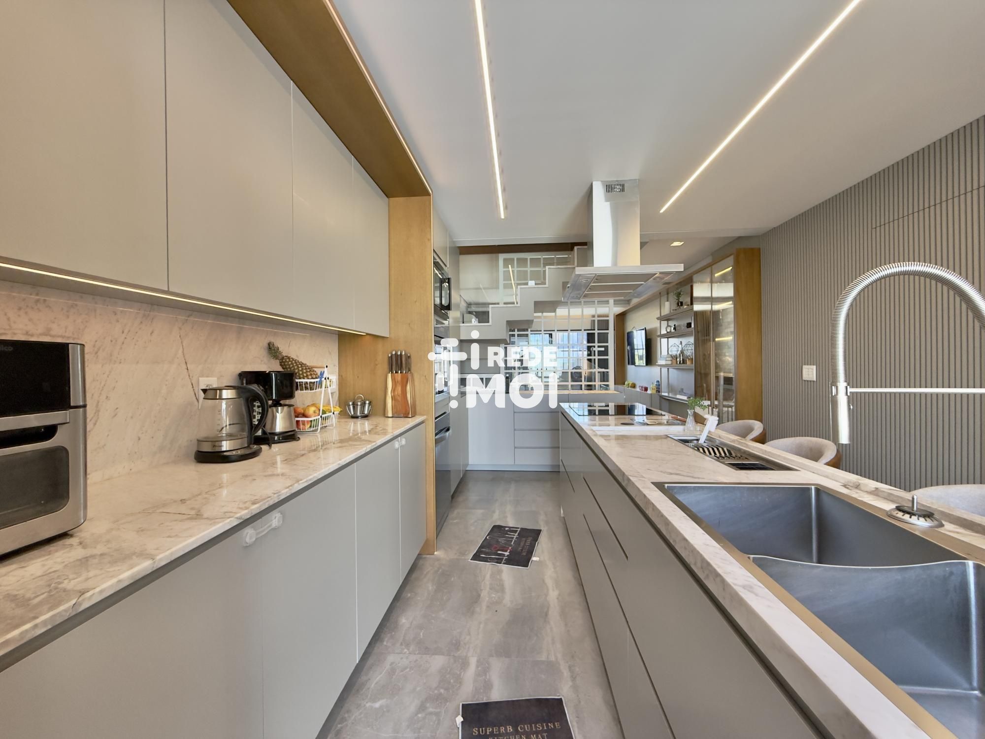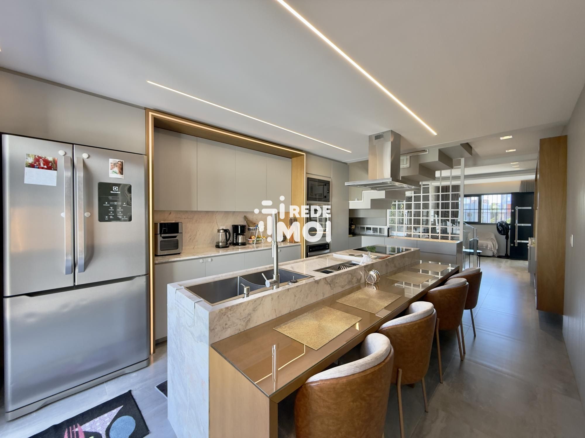 • pedra em mármore área gourmet cozinha escada banheiros todos os 3 com pia esculpida no mármore