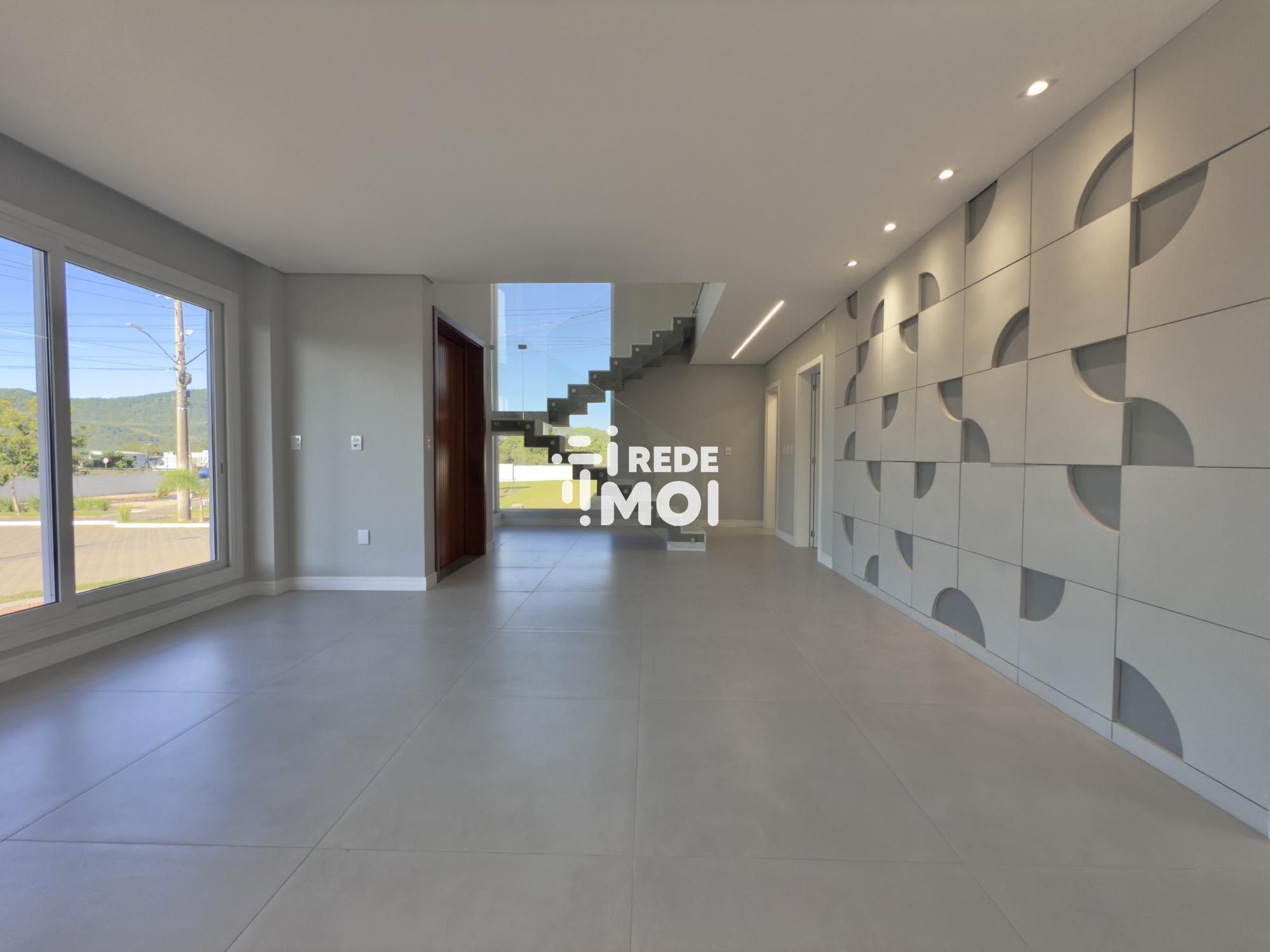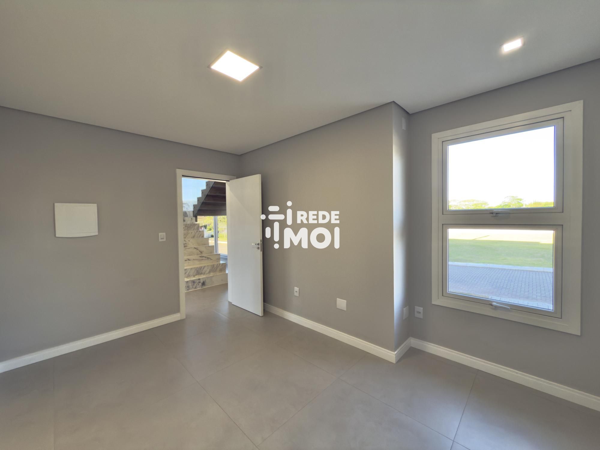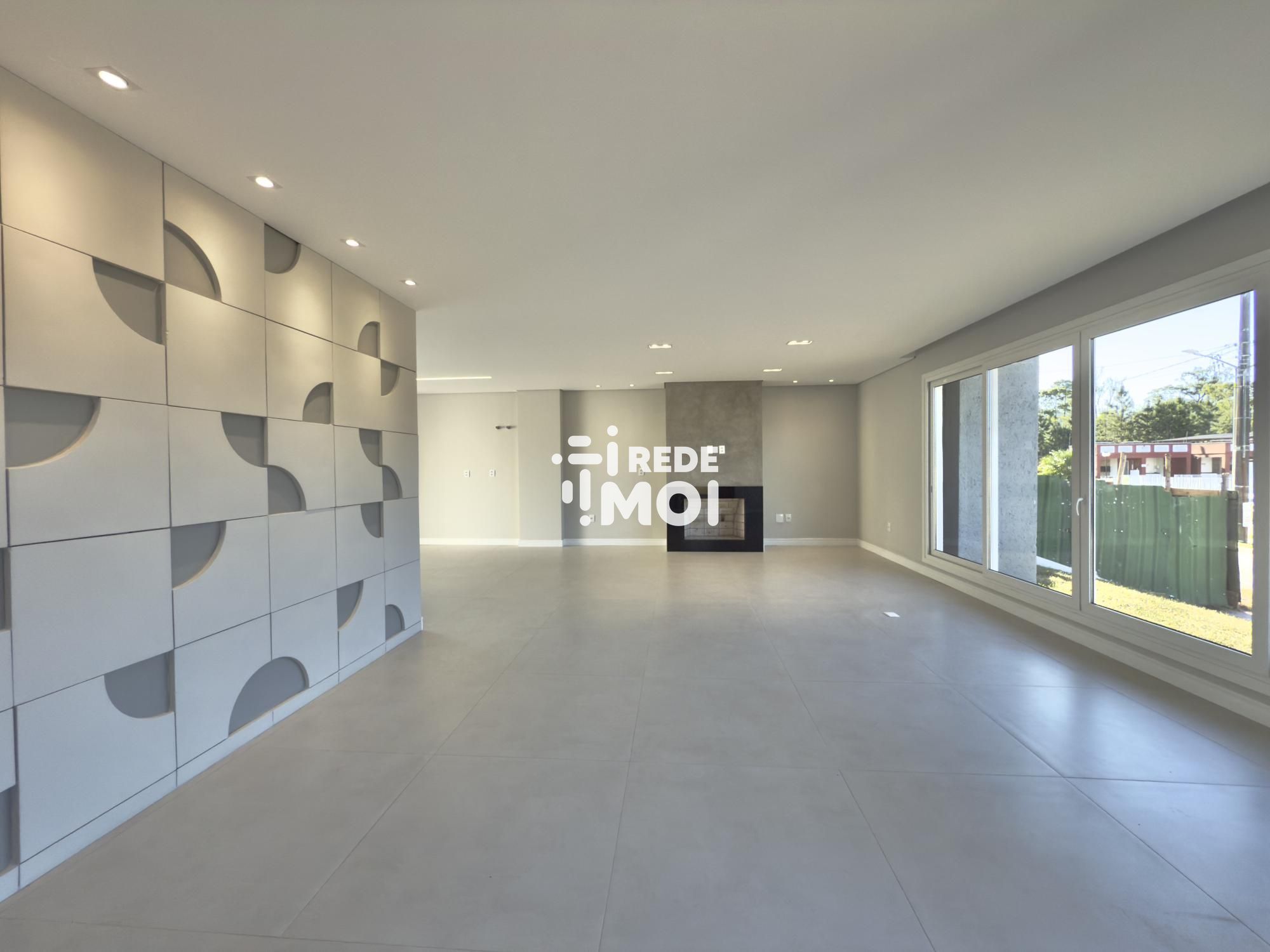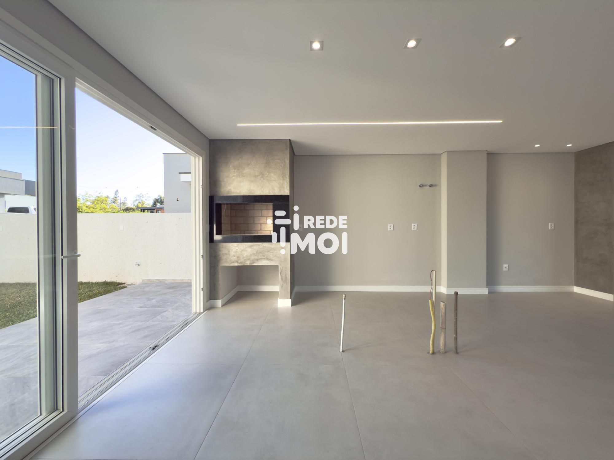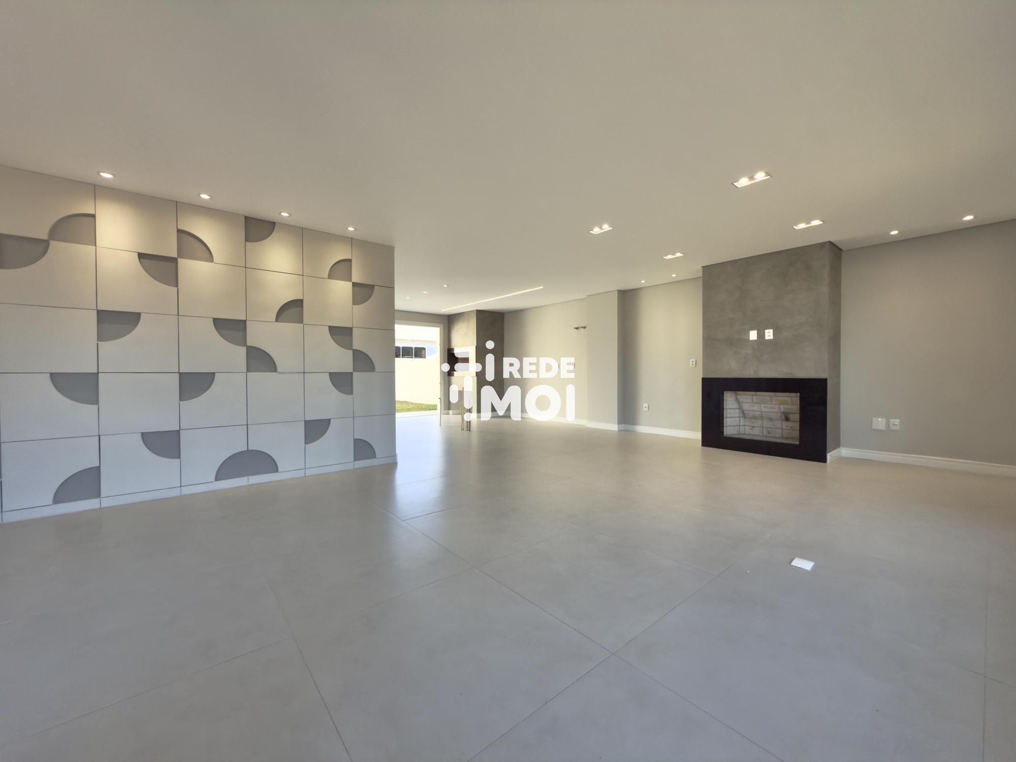 Em seu primeiro pavimento temos um living amplo para até 2 ambientes, com lareira, cozinha integrada com churrasqueira, lavabo, área de serviço, escritório (que pode ser utilizado como dormitório térreo) e um amplo pátio gramado com espera para piscina para usufruir de momentos de lazer.