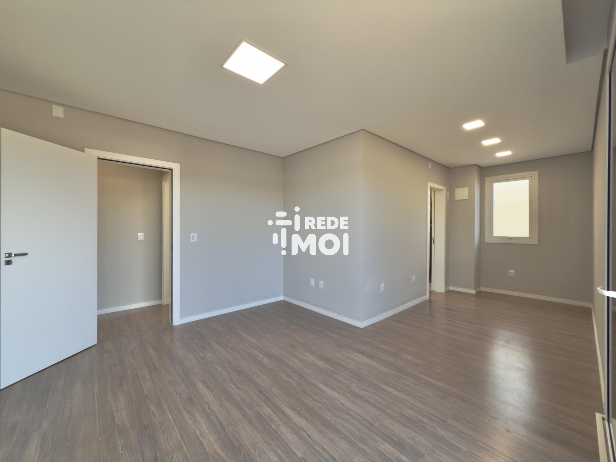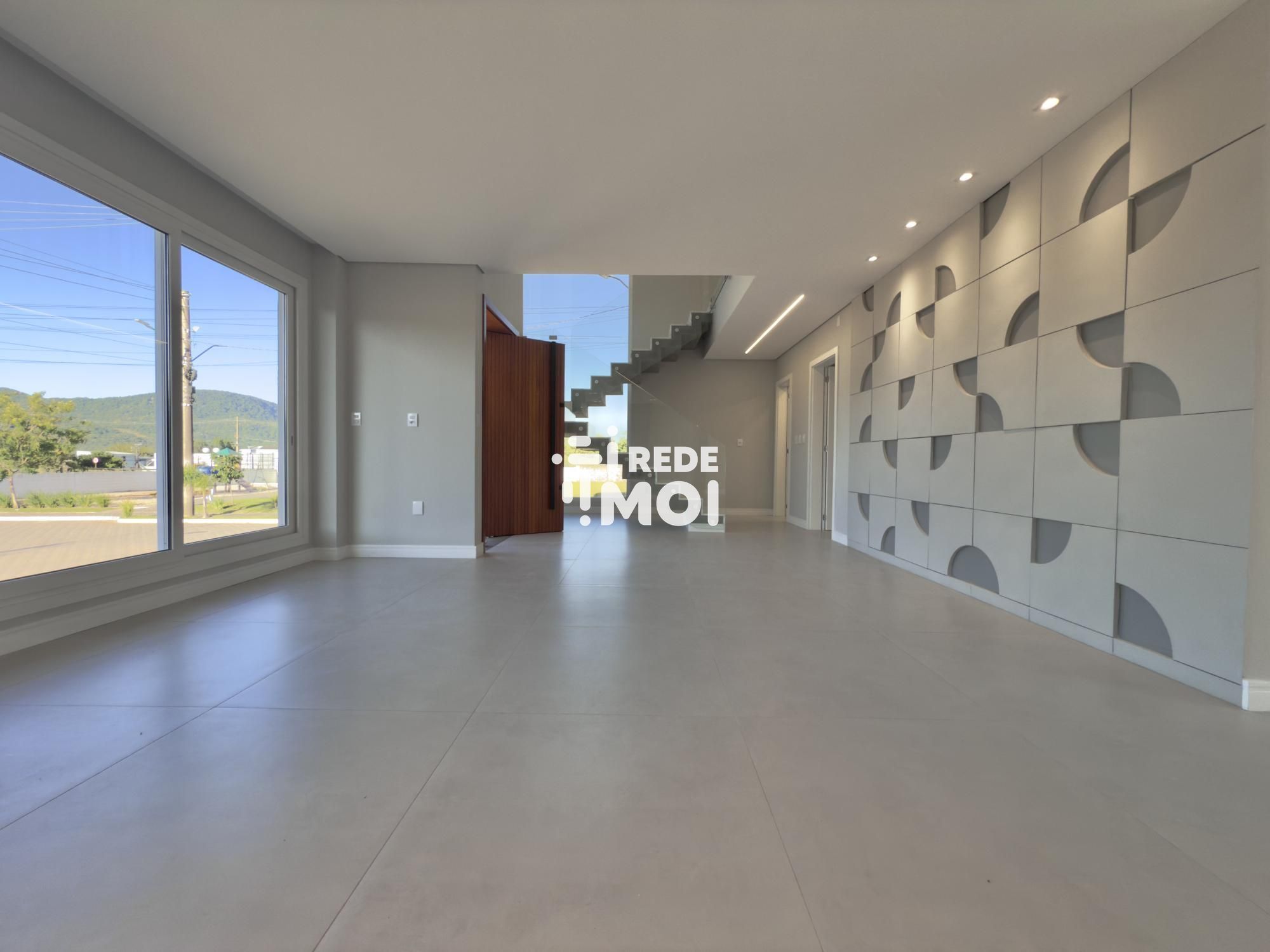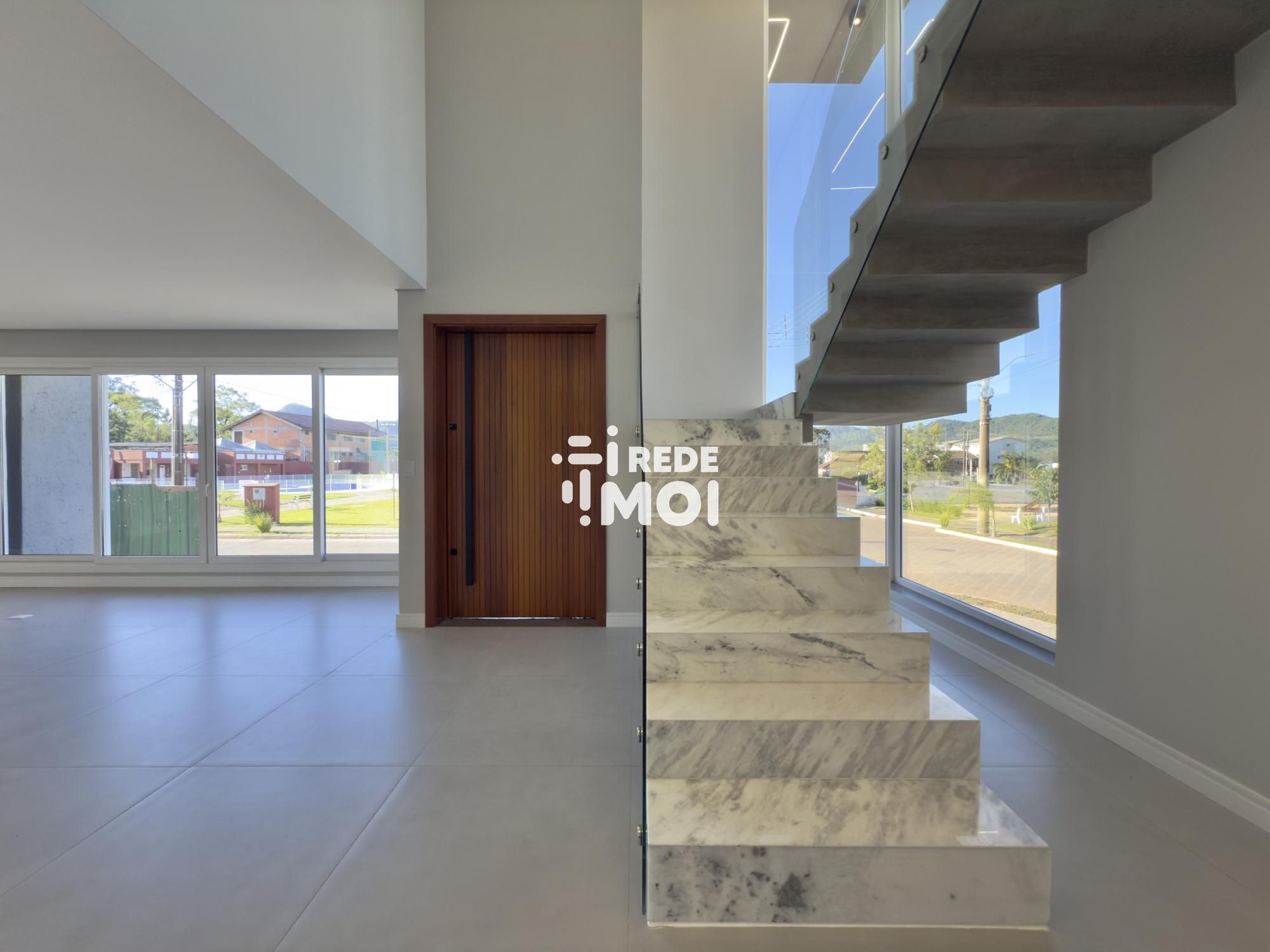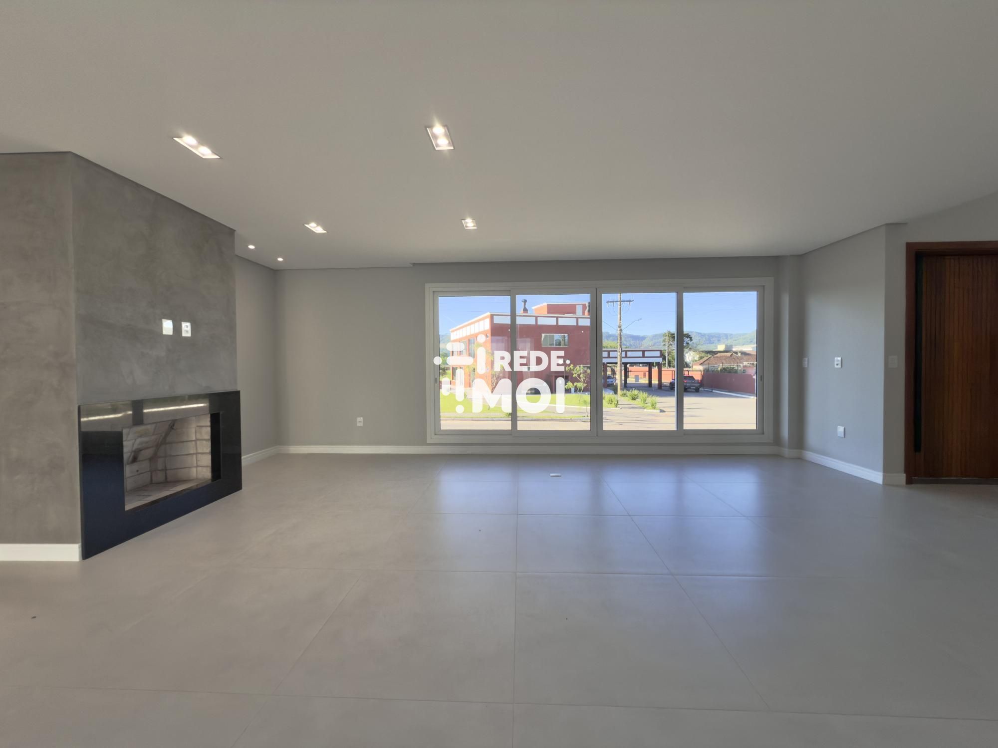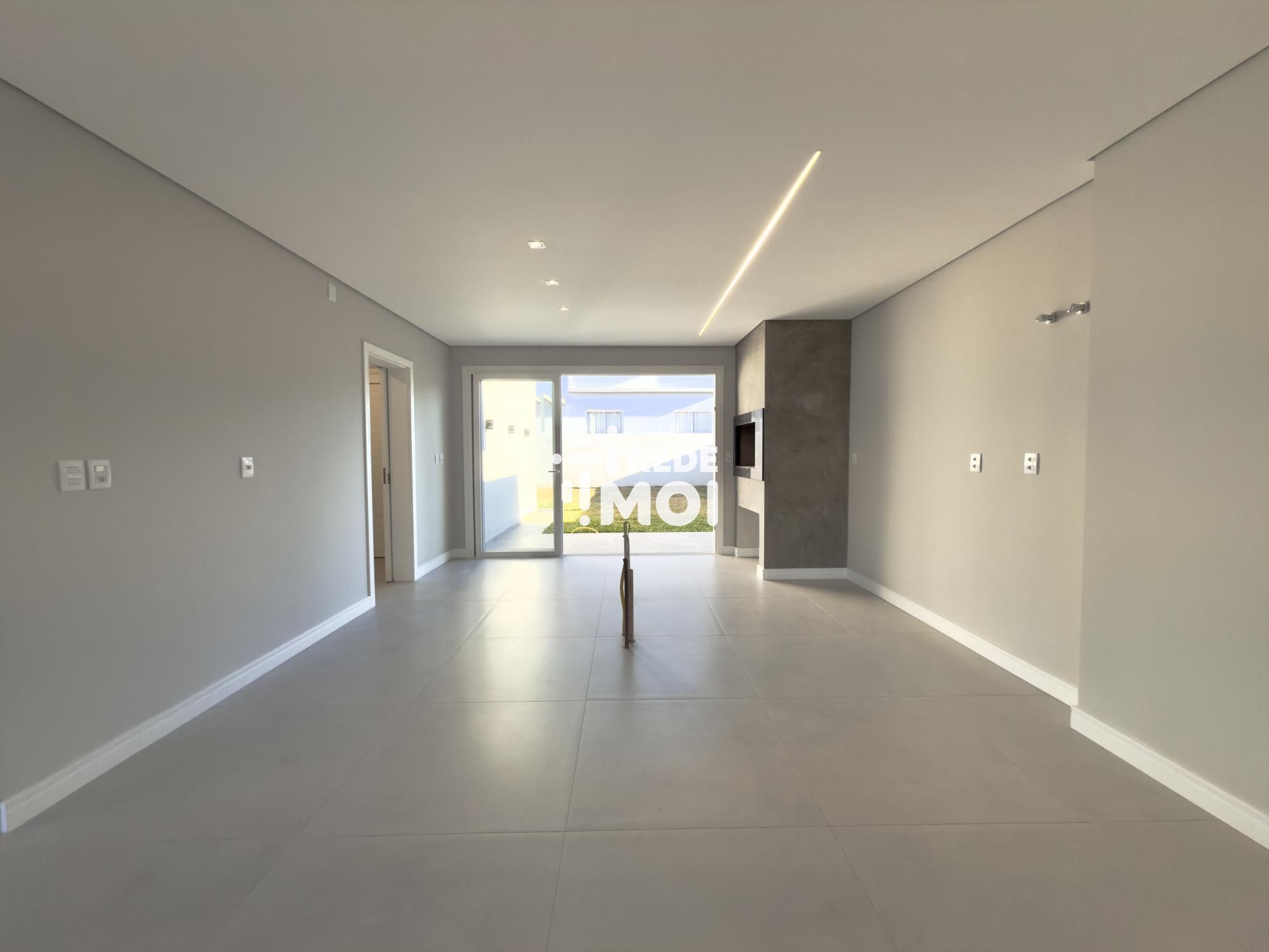 Em seu primeiro pavimento temos um living amplo para até 2 ambientes, com lareira, cozinha integrada com churrasqueira, lavabo, área de serviço, escritório (que pode ser utilizado como dormitório térreo) e um amplo pátio gramado com espera para piscina para usufruir de momentos de lazer.