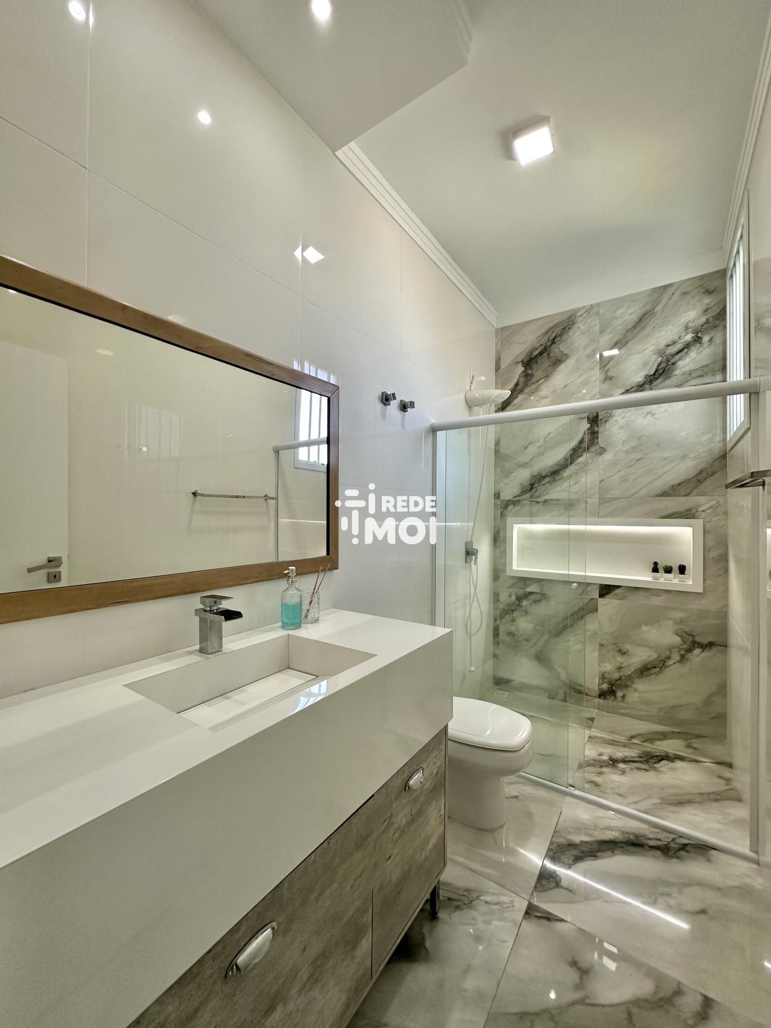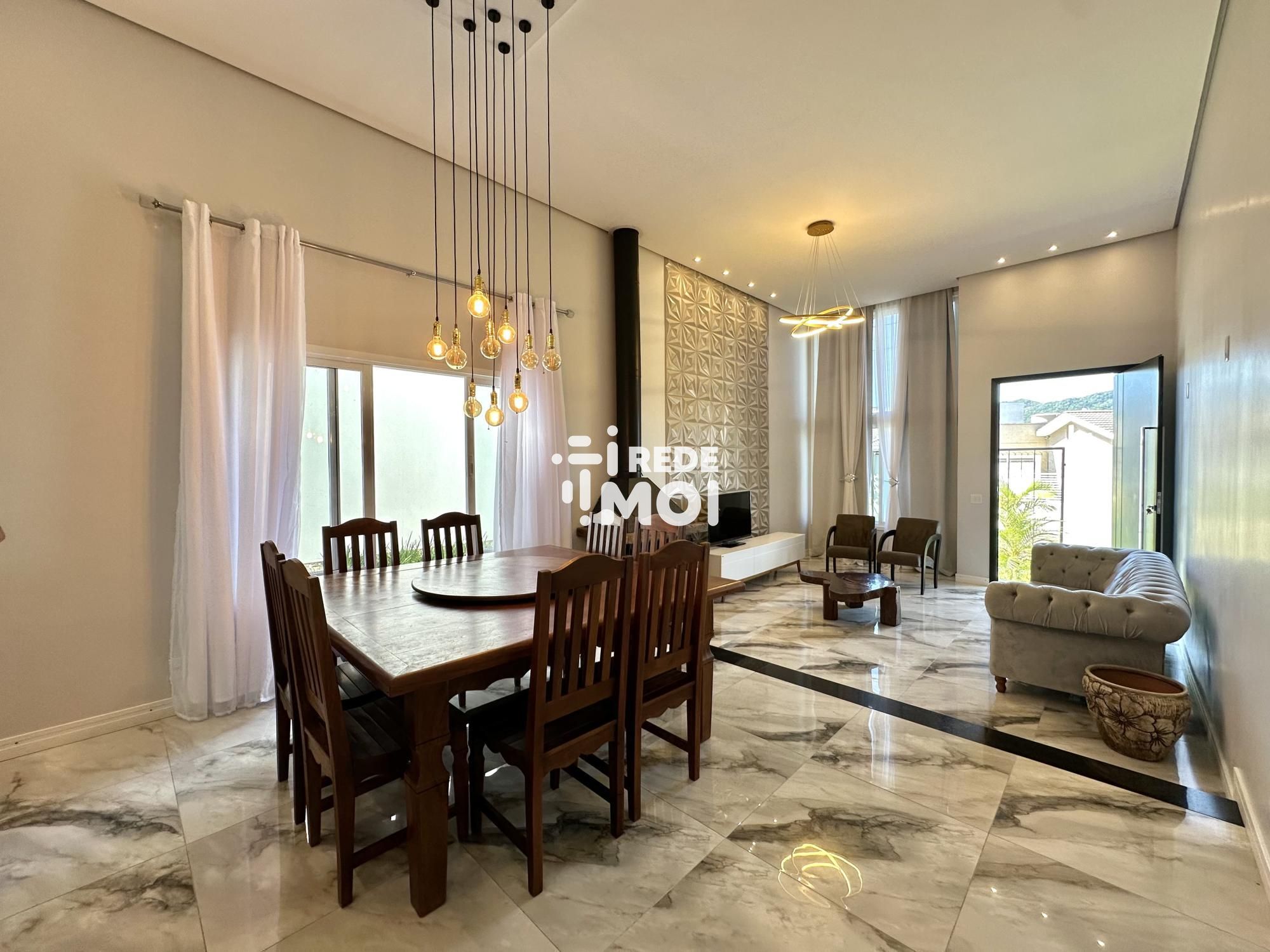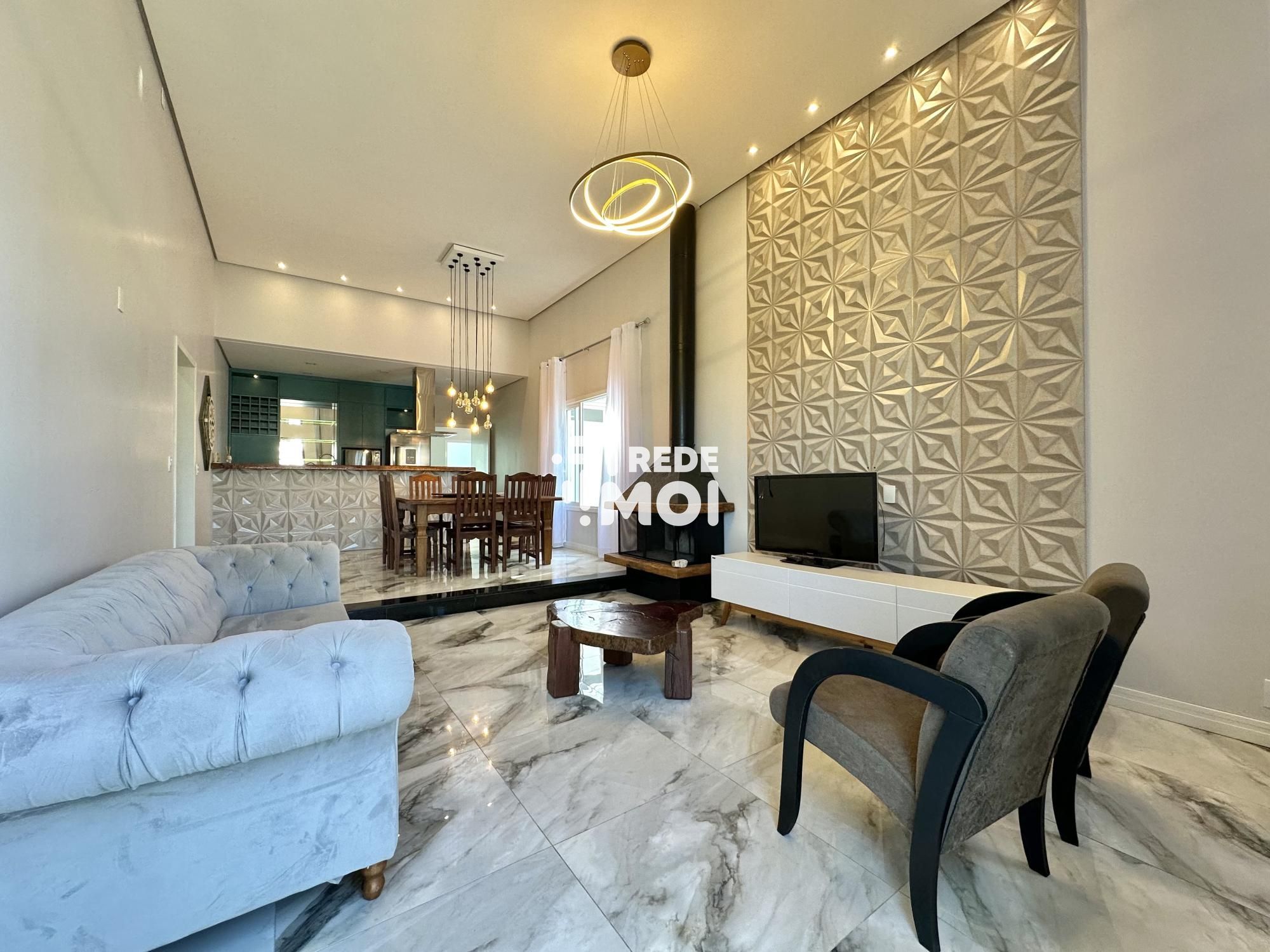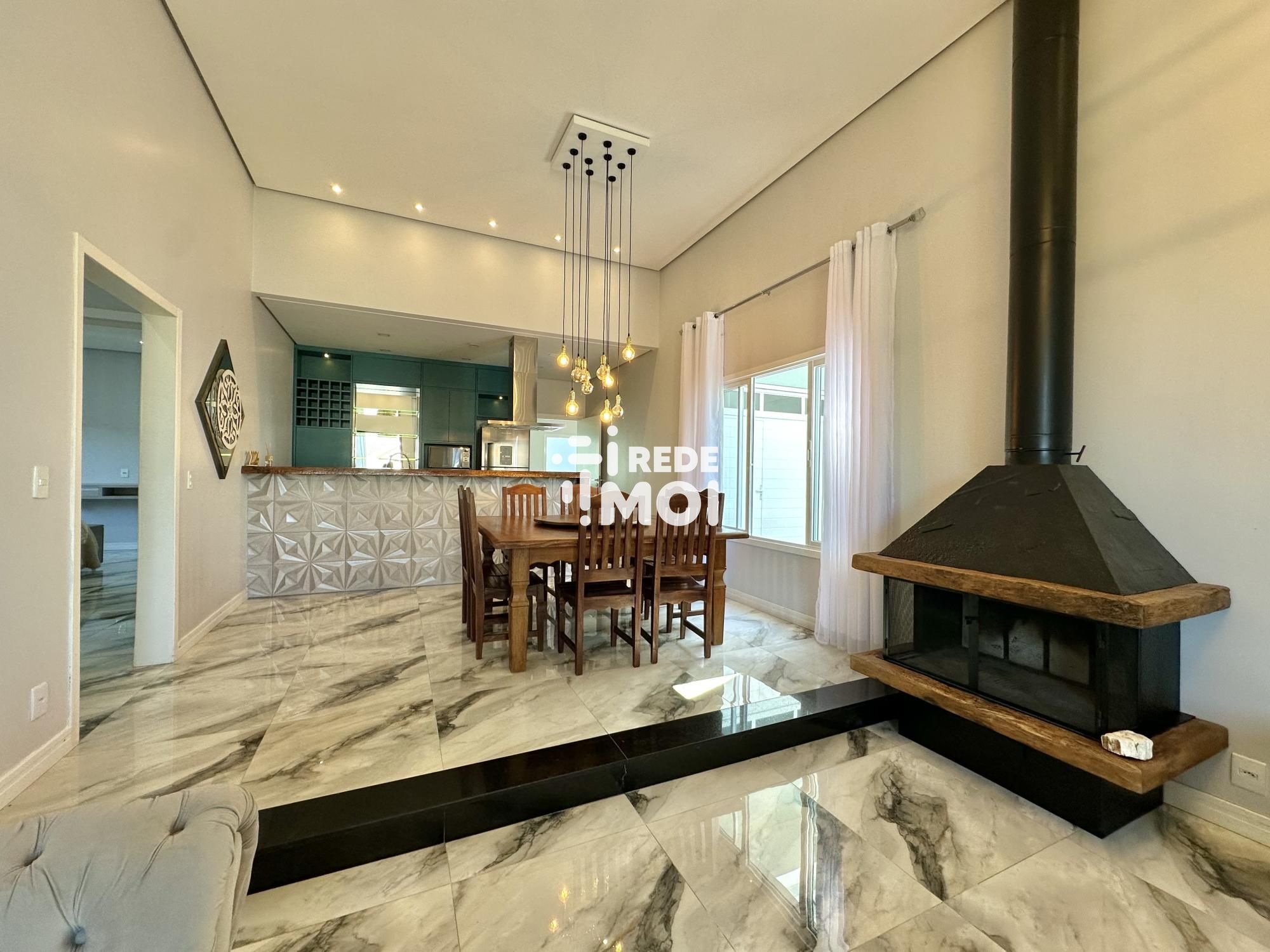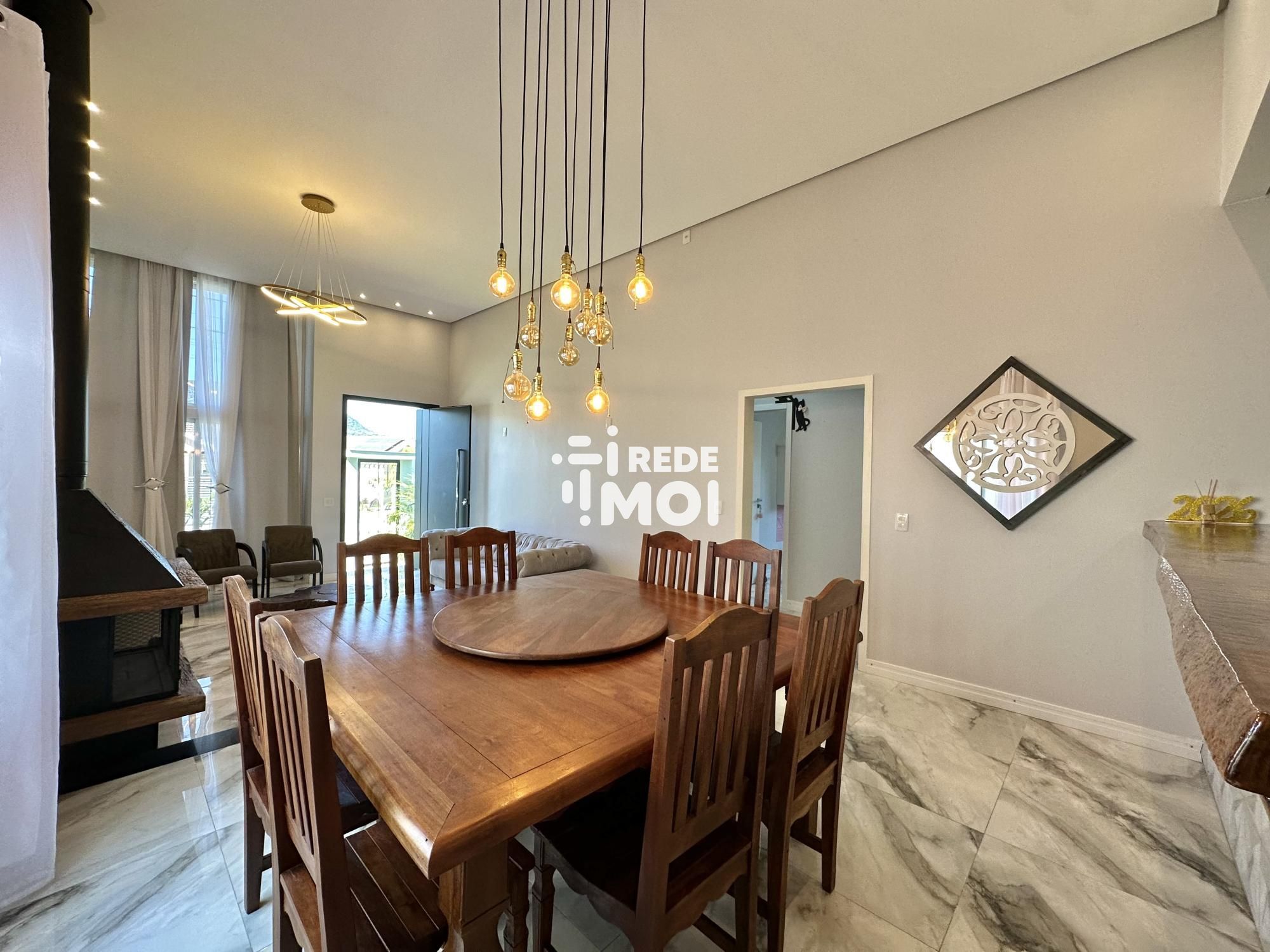 A casa possui uma série de comodidades para garantir um estilo de vida moderno e confortável. Conta com lareira, banheiro social, cozinha americana, lavabo, armários embutidos, microondas, armários na cozinha, aquecimento solar, cerca elétrica, portão eletrônico, interfone, churrasqueira, pátio, ar condicionado, sala de estar, sala de jantar, geladeira, móveis planejados, espaço gourmet, muro, jardim, energia solar, acessibilidade para PCD, pé direito elevado, janelas amplas, luminárias, reservatório de água e é uma residência inteligente.