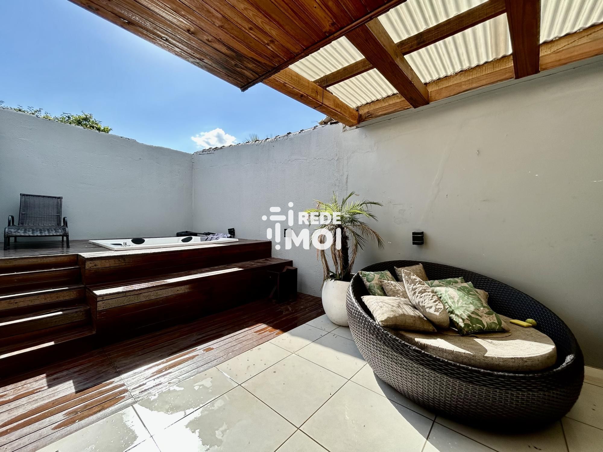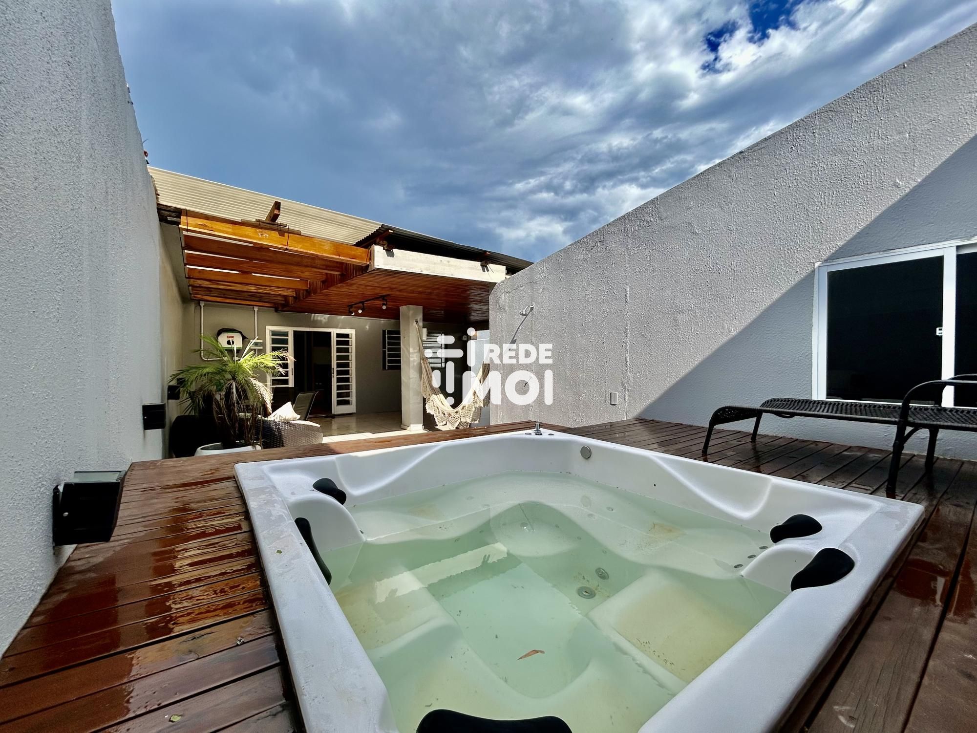 Possui piso porcelanato em toda a casa, amplo espaço nos fundos com deck e jacuzzi e peça independente com banheiro, ideal para escritório ou uso multiuso.