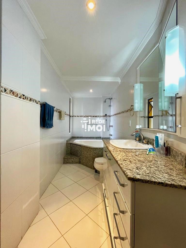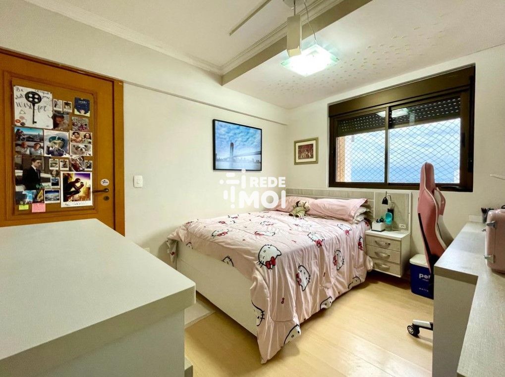 Cobertura duplex, sendo o primeiro pavimento composto por sala de estar/jantar com lareira, sacada, cozinha, área de serviço, dependência, lavabo e mais 4 dormitórios, 1 suíte.