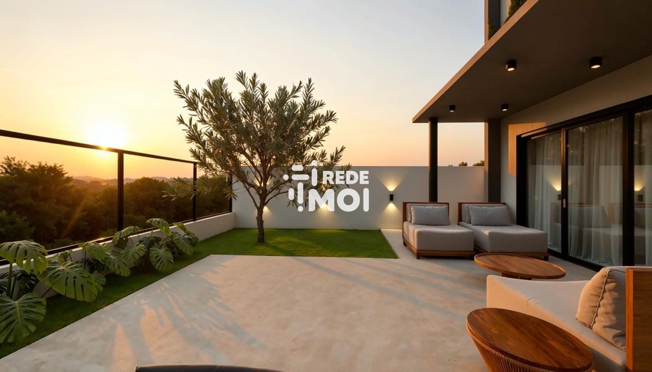 Pátio com vista permanente do horizonte (pôr do sol)